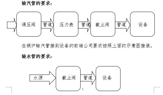 为了有效控制输入的蒸汽和冷却水,达到设备适宜的条件,请按公司的提议接装输汽管和输水管。